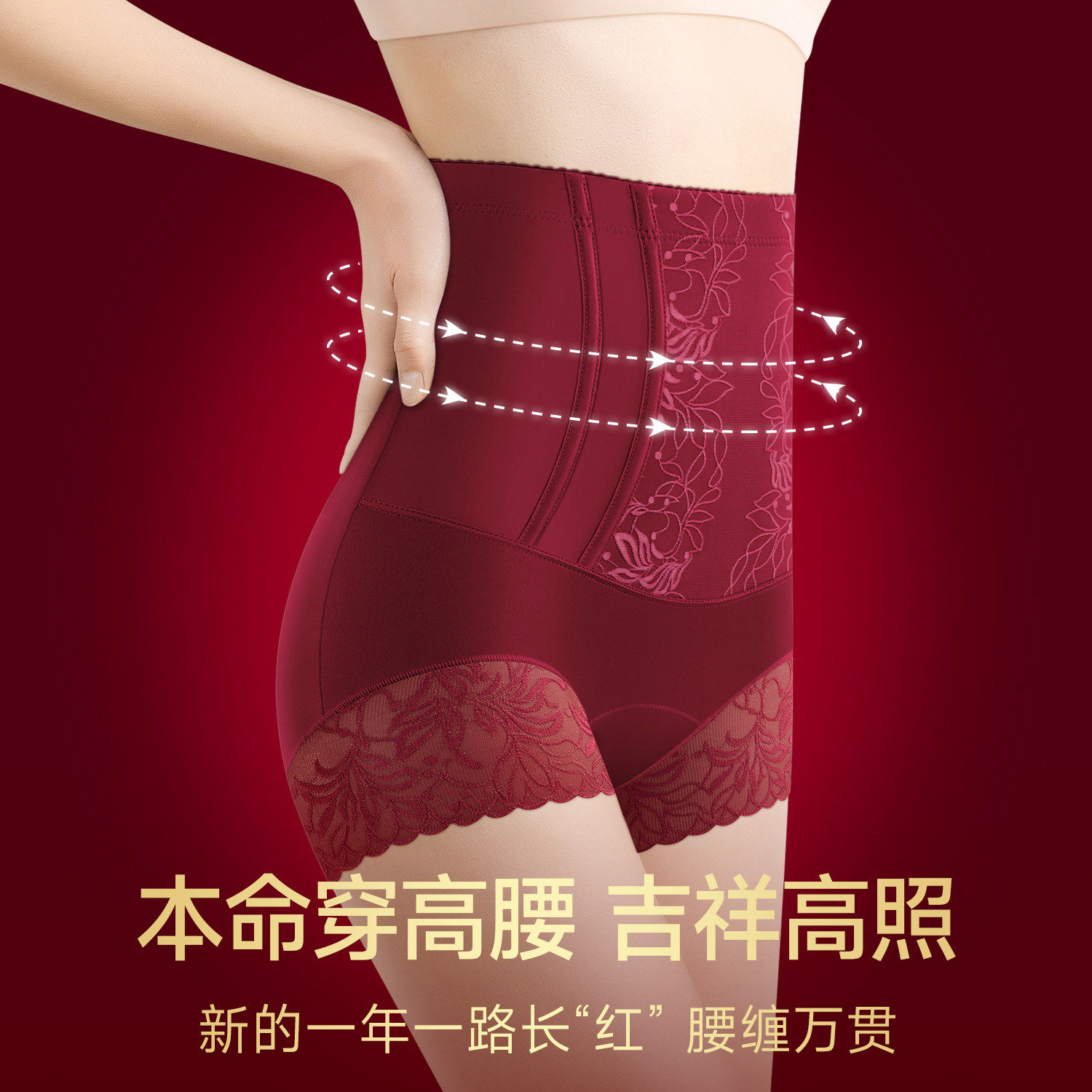 本命年高腰收腹裤强力收小肚子塑身提臀2026年属马红色内裤女黑色