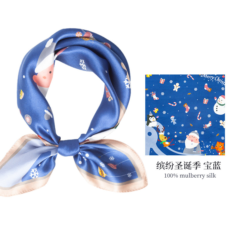 宝宝100%真丝方巾上海故事桑蚕丝卡通丝巾圣诞节礼物围巾儿童款