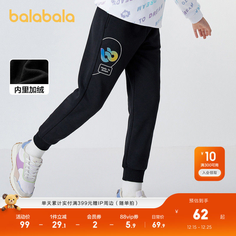 巴拉巴拉童装女童裤子儿童秋冬长裤中大童加绒保暖运动裤时尚简约