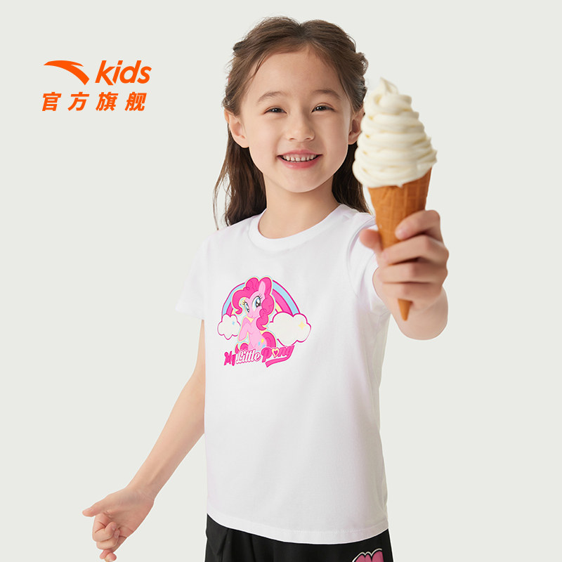 小马宝莉IP安踏儿童短t女童小童白色2026夏季儿童纯棉宝宝短袖