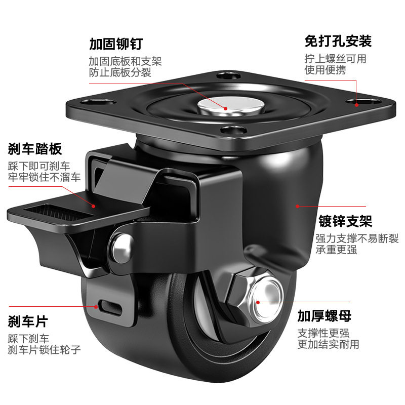 承重脚轮重型3寸2寸万向轮轮子带刹车4寸工业载重尼龙轱辘承重3吨