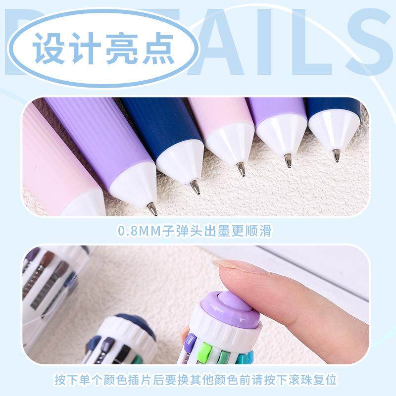 10支6色圆珠笔多色手账笔韩国创意文具简约可爱多功能按动彩色笔