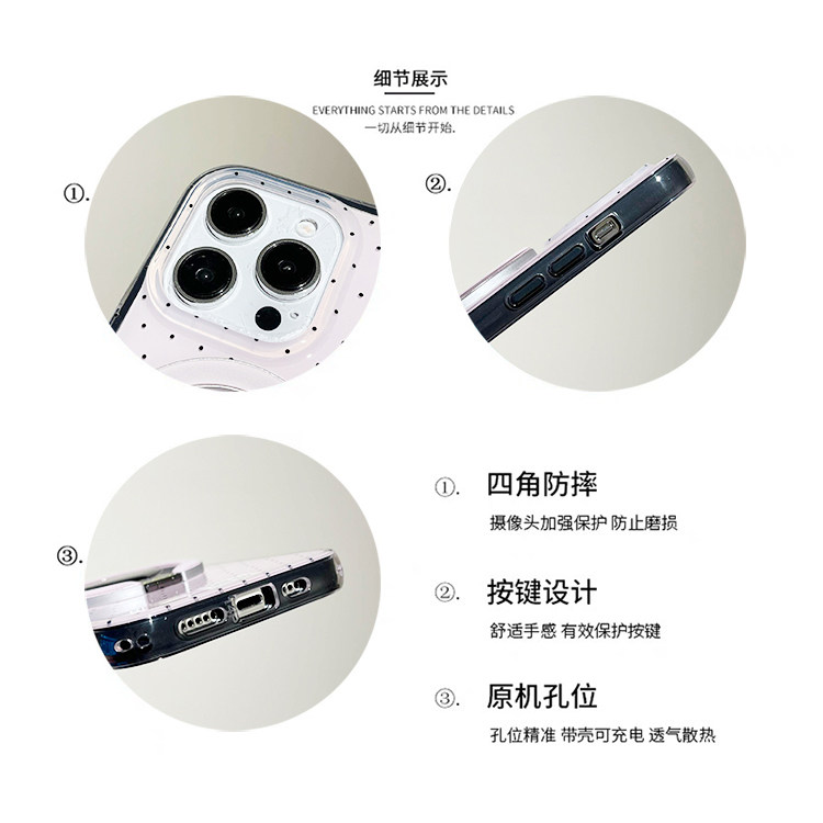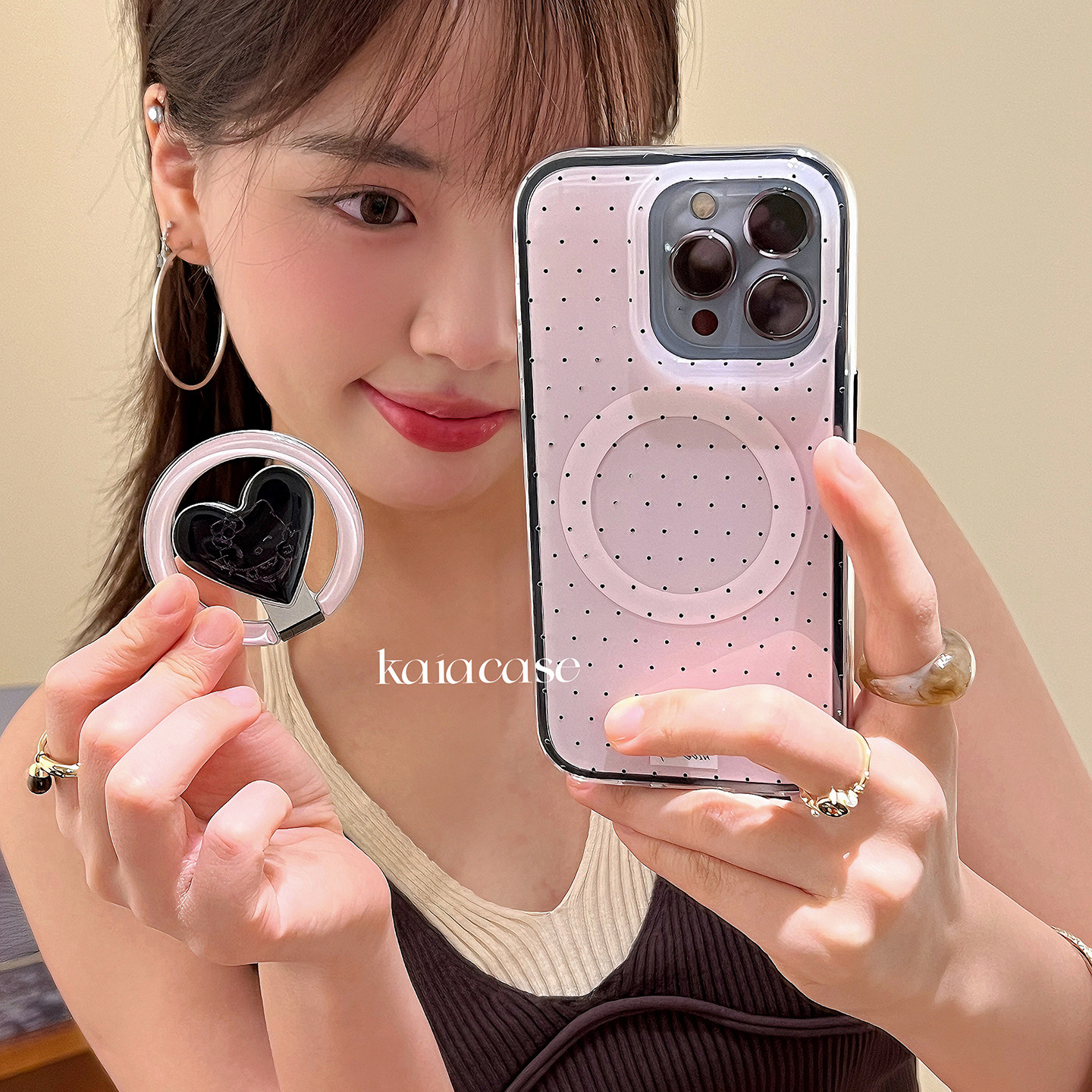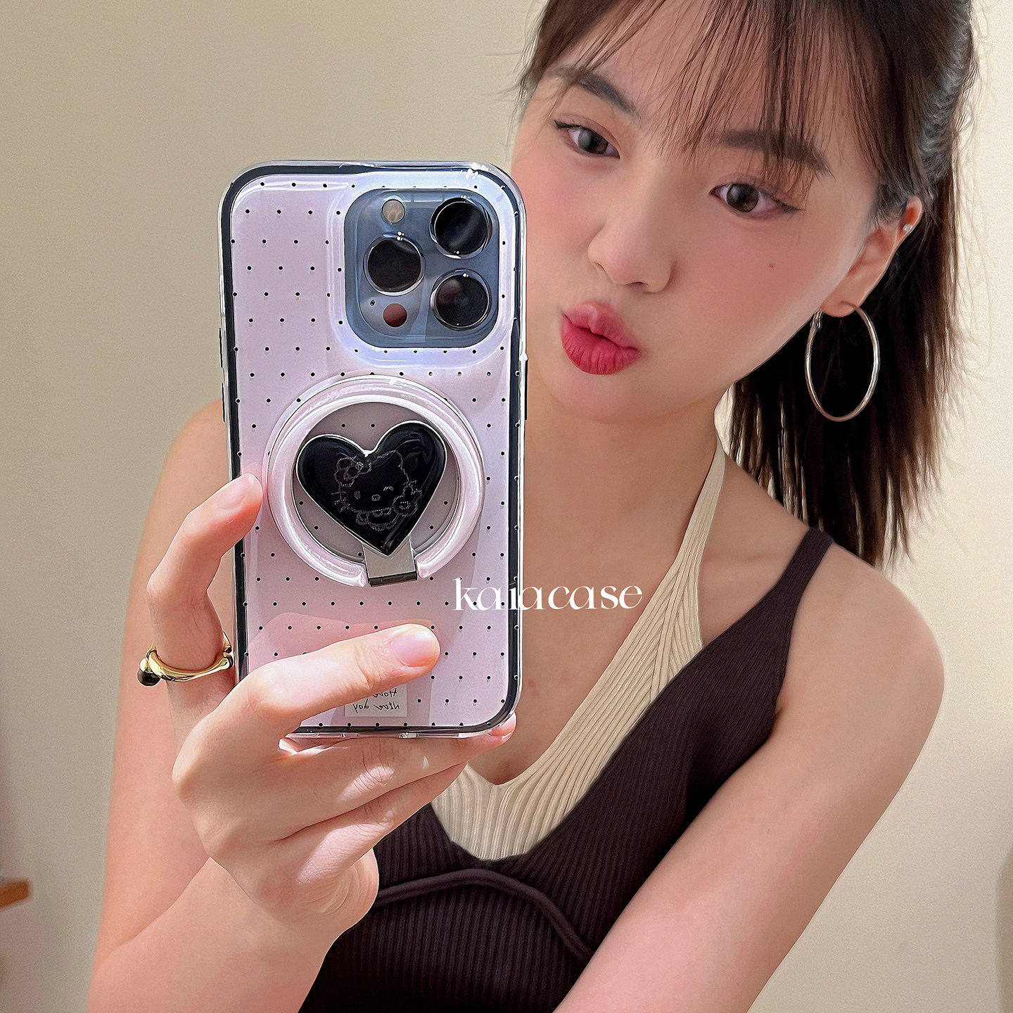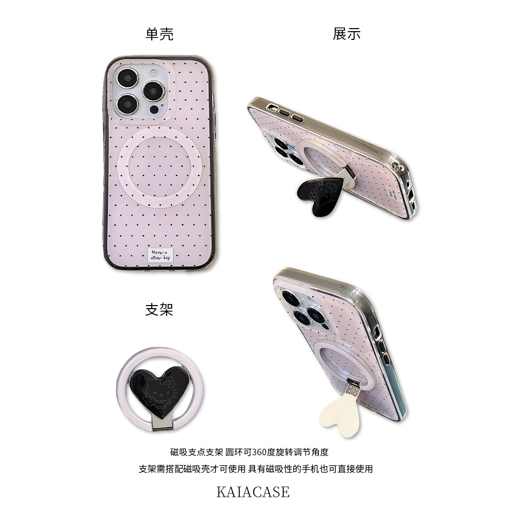 kaia日韩简约波点爱心KT猫适用苹果16promax手机壳iphone17新款15女14pro旋转磁吸支架16pro二合一防摔手机套