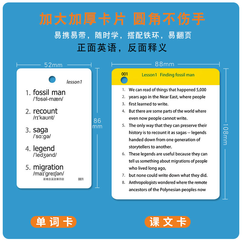 新概念英语第一二三四册单词卡片全套课文背诵便携小学初高中必背