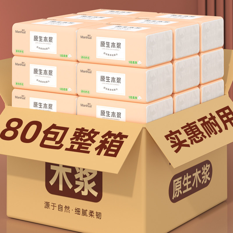 漫花80包抽纸整箱批发纸巾小包餐巾纸家用实惠装卫生纸面巾厕纸