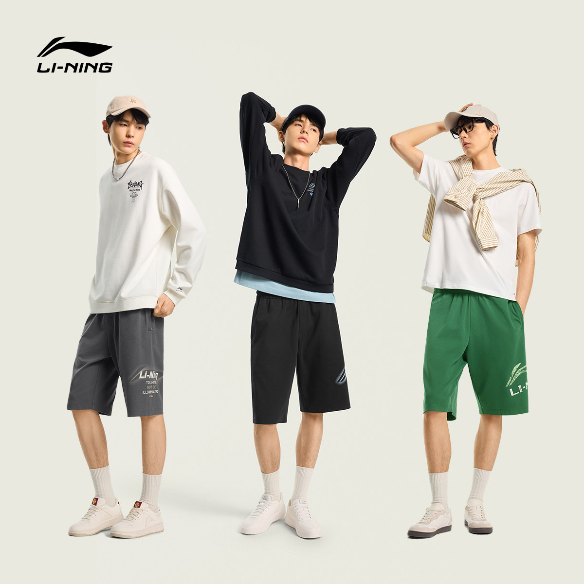 李宁短卫裤男士2026新款凉感裤子黑色短裤男款夏休闲复古运动裤男