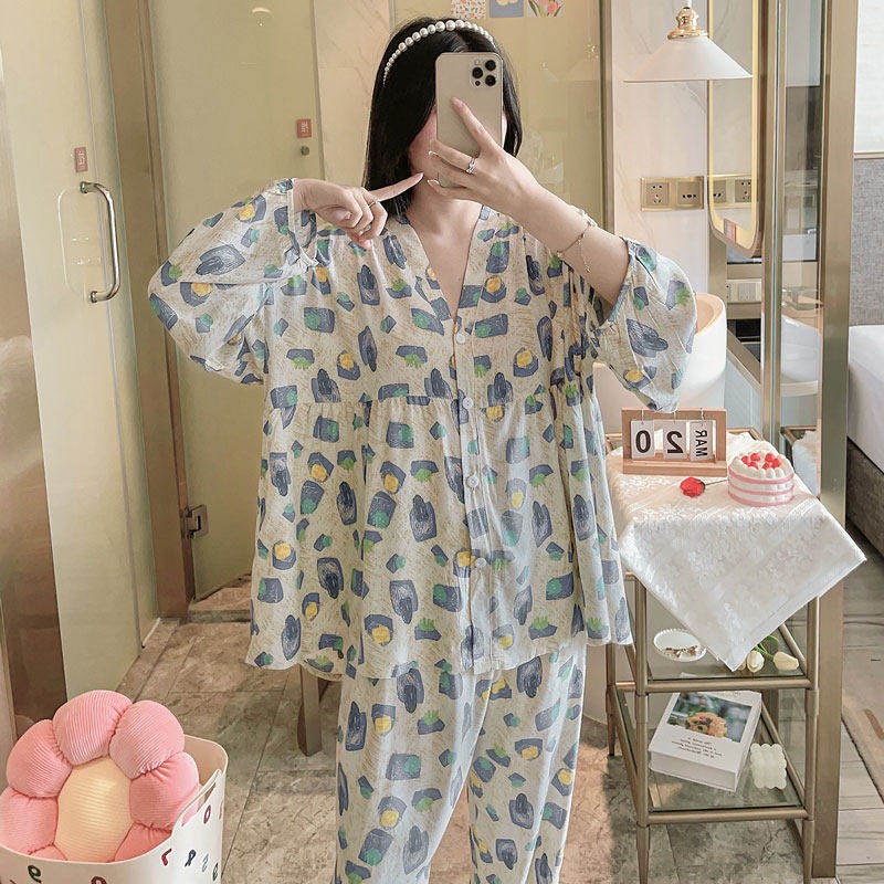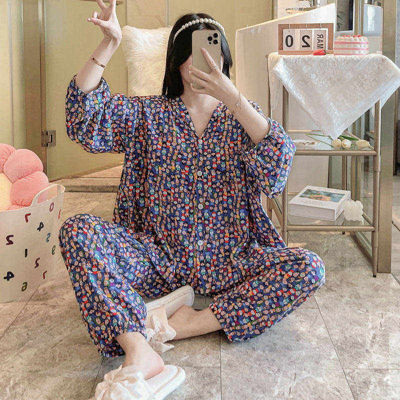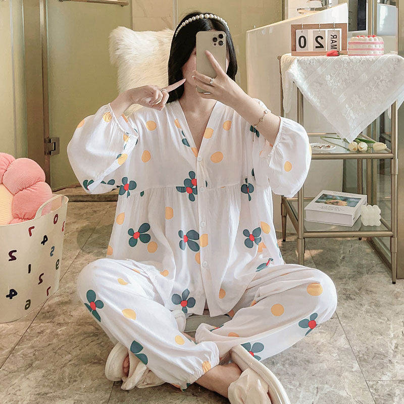 浪莎睡衣女春秋款纯棉长袖2025年新款秋冬大码薄款宽松开衫家居服