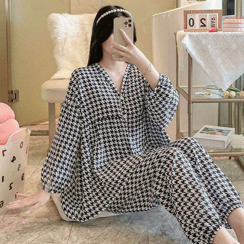 浪莎睡衣女士2025年新款春秋款纯棉长袖薄款高级感大码家居服套装