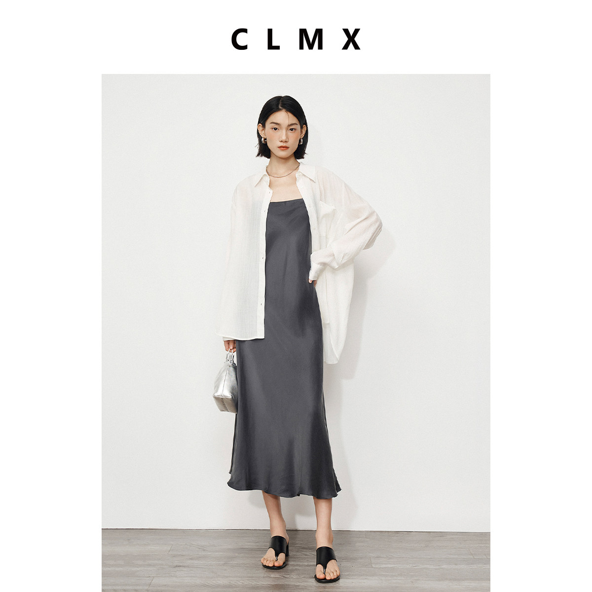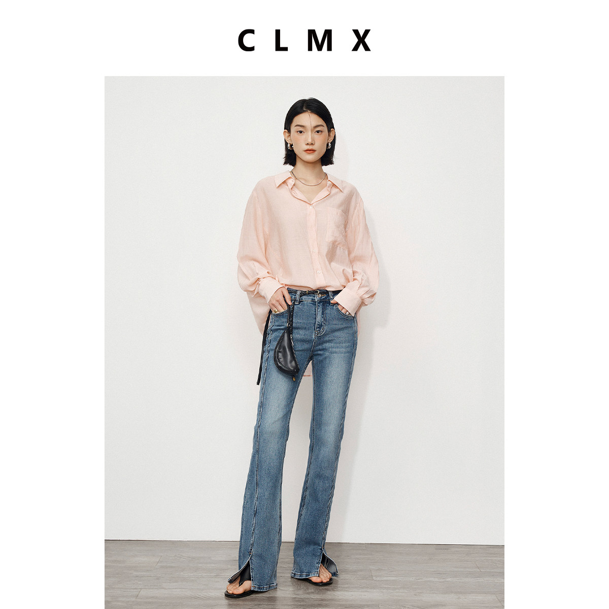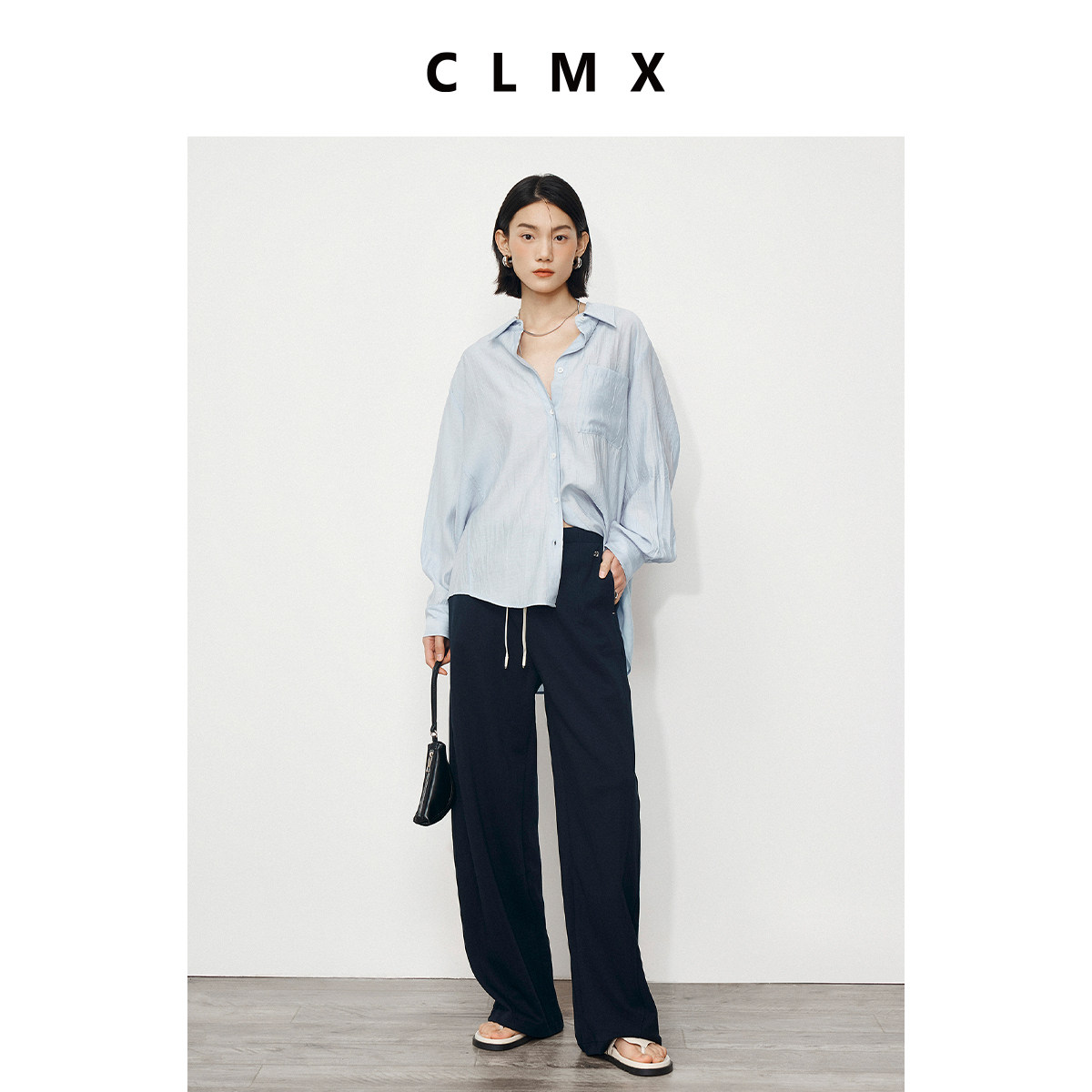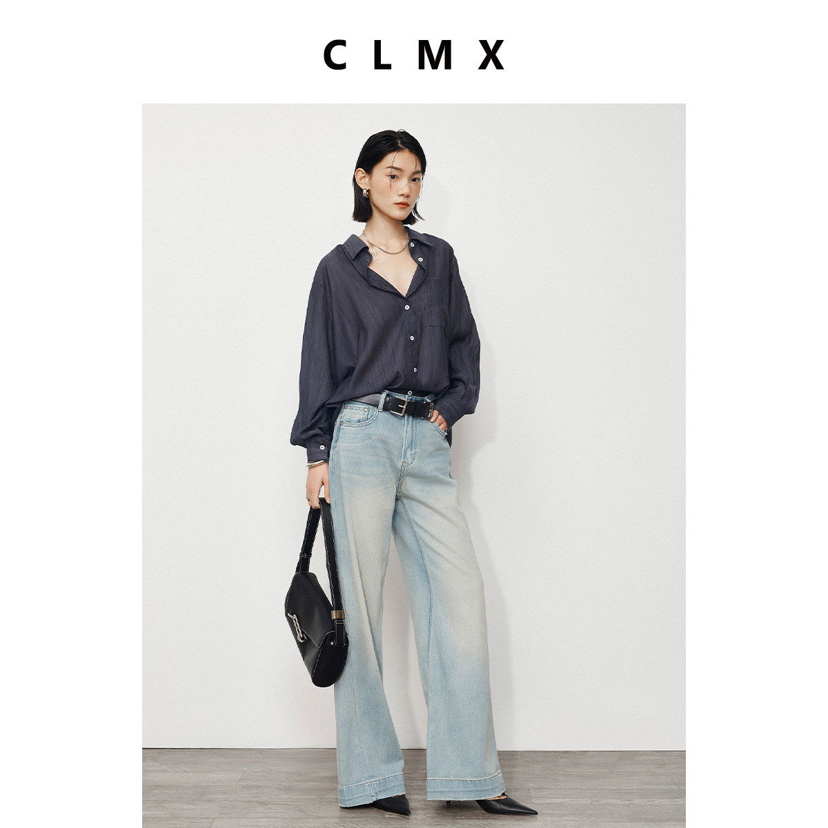 CLMX自然时装感水洗缩皱衬衫面料 浅春系造型感收腰扣袢廓形衬衫