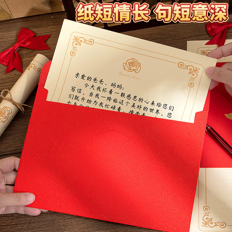 爸爸妈妈辛苦了感恩节贺卡感谢信纸信封套装鲜花店花束送父母礼物高级感精致卡片手写信母亲生日祝福语留言卡