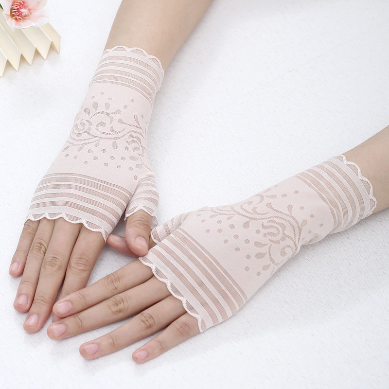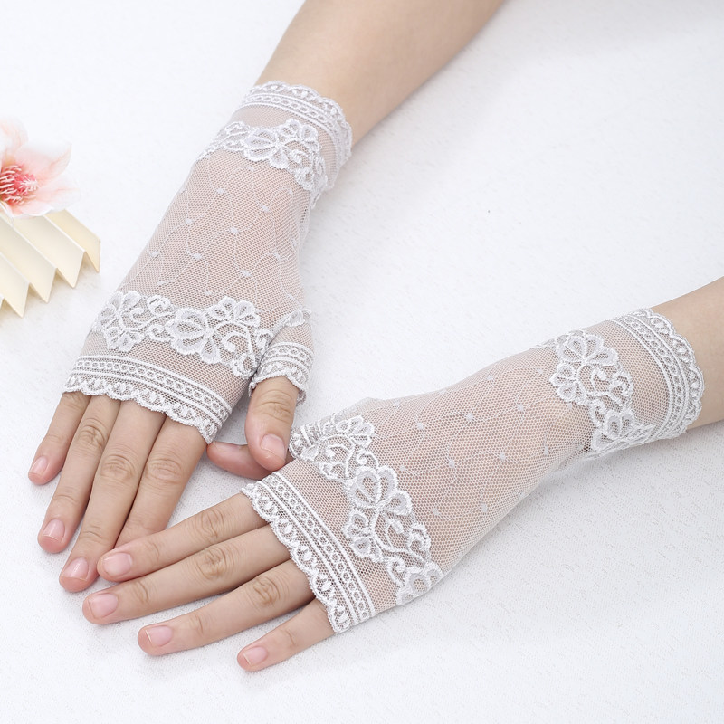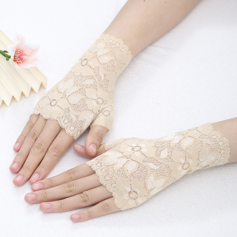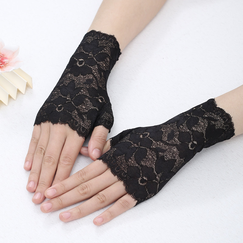 蕾丝半指女夏季遮疤痕防晒露指薄款半截透气跳舞表演装饰漏指手套