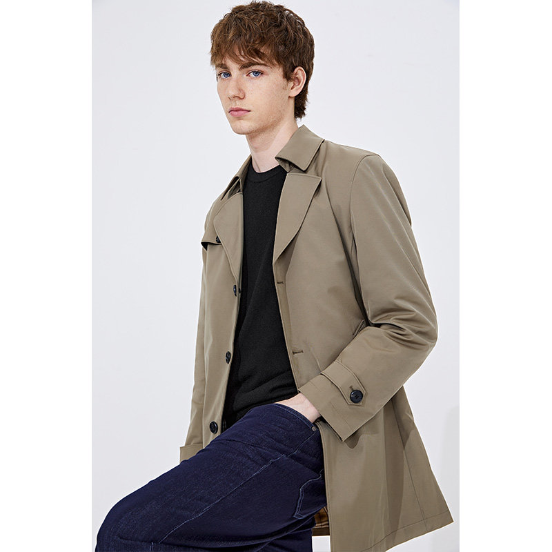 [抗皱]Navigare意大利小帆船卡其色风衣外套男春季休闲中长款大衣