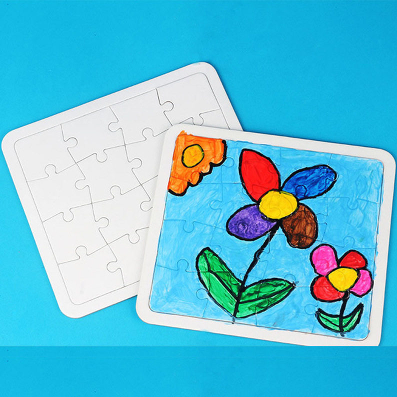 儿童DIY空白纸质白模涂色自由涂鸦绘画拼插玩具涂色拼图填色拼板