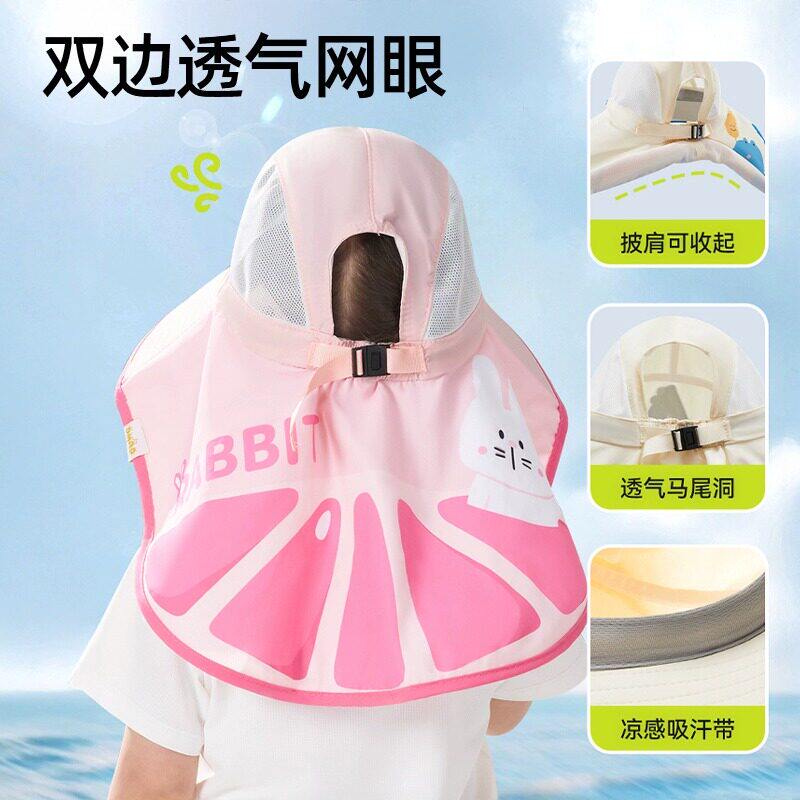 蕉下儿童多功能防晒帽披肩帽黑胶全防护男女童夏季大帽檐遮阳帽子
