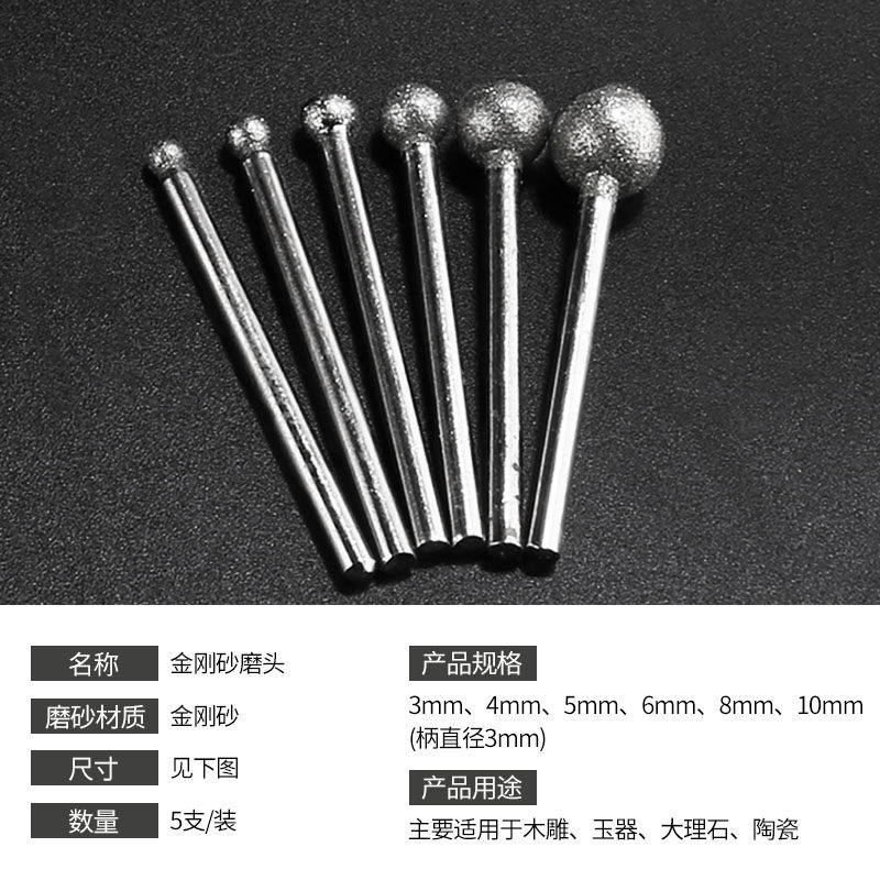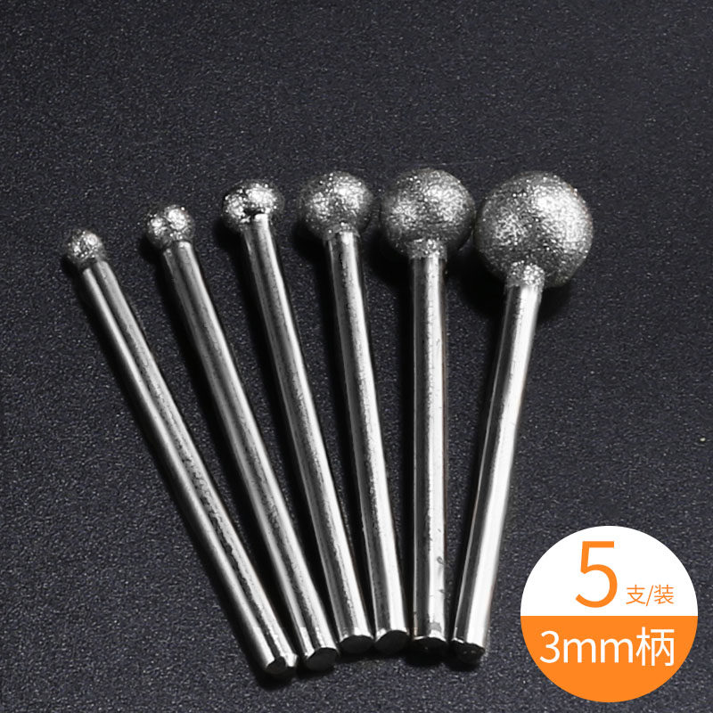 金刚石磨头细砂球形合金原石翡翠电磨头金刚砂磨棒3MM柄磨针打磨