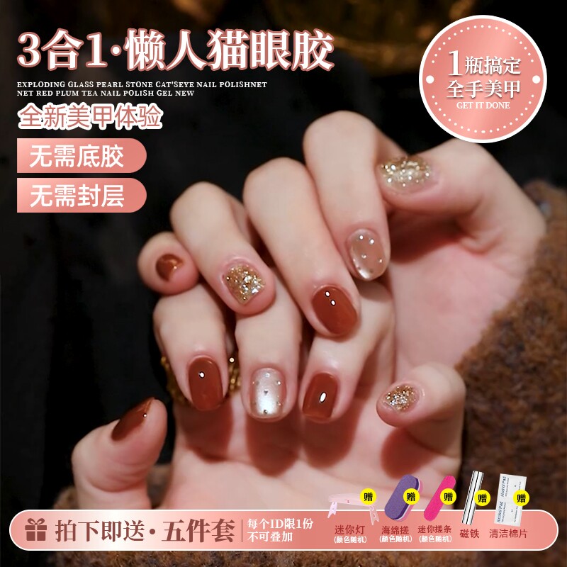 2025年新款秋冬五合一懒人猫眼胶显白晶石猫眼指甲油胶美甲速颜胶