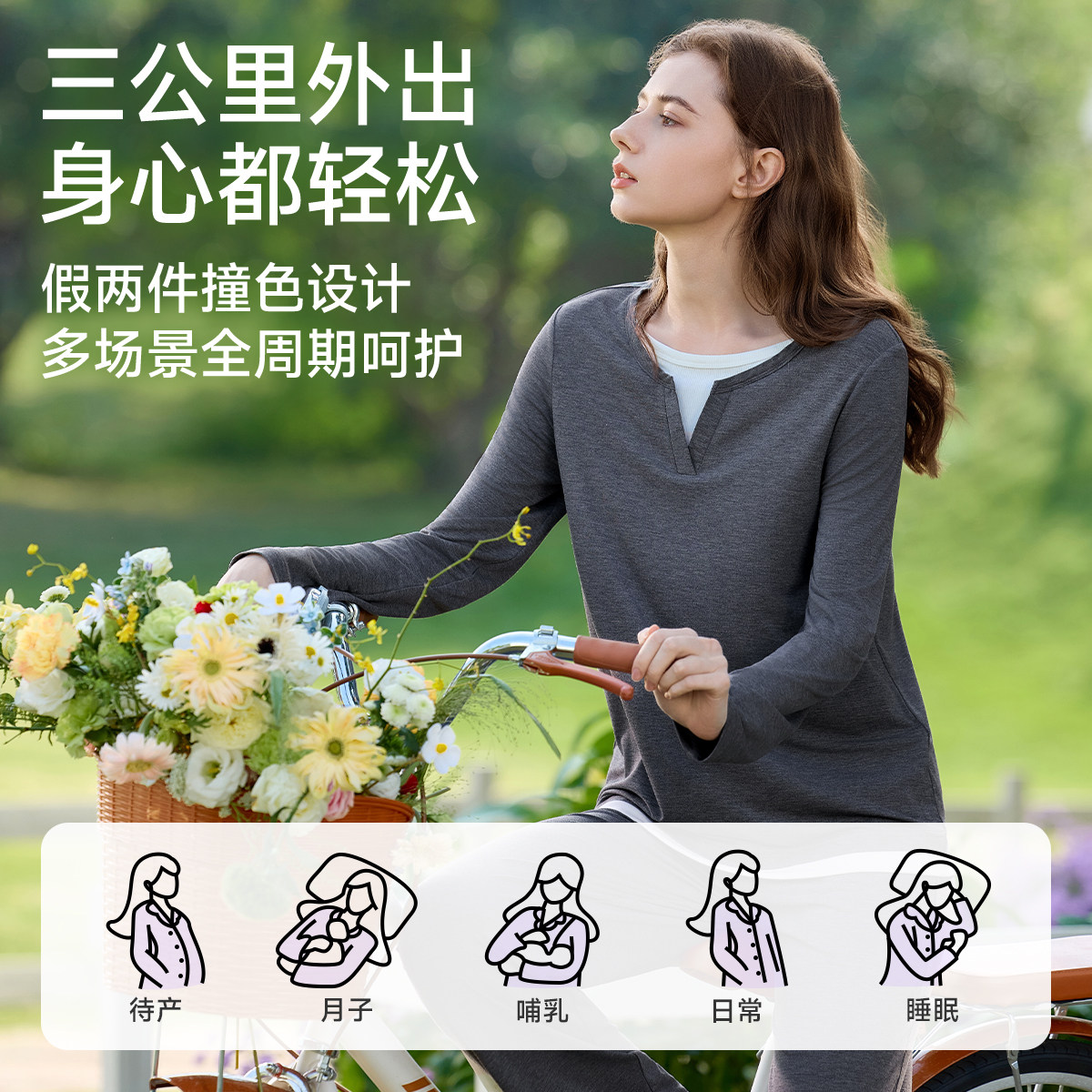 婧麒竹纤维月子服孕妇睡衣产后孕妇睡衣哺乳喂奶待产怀孕期家居服