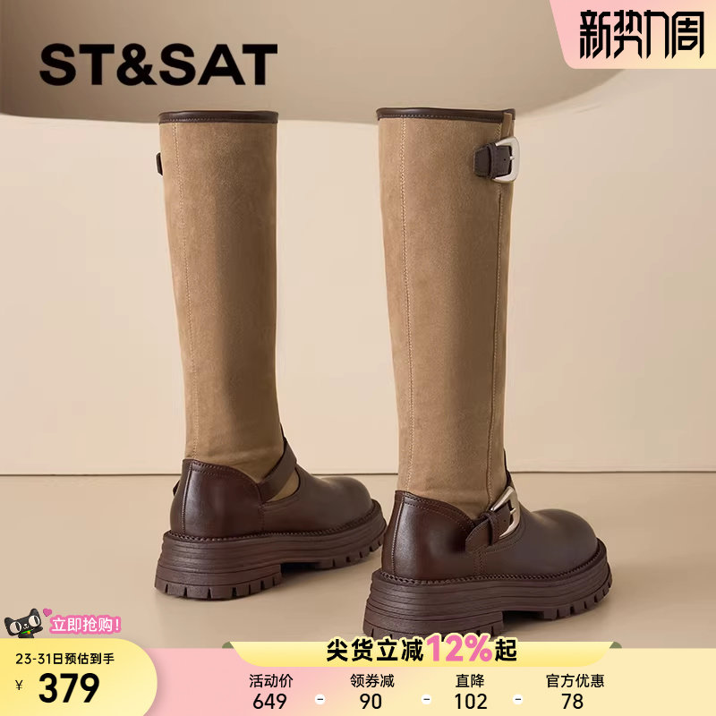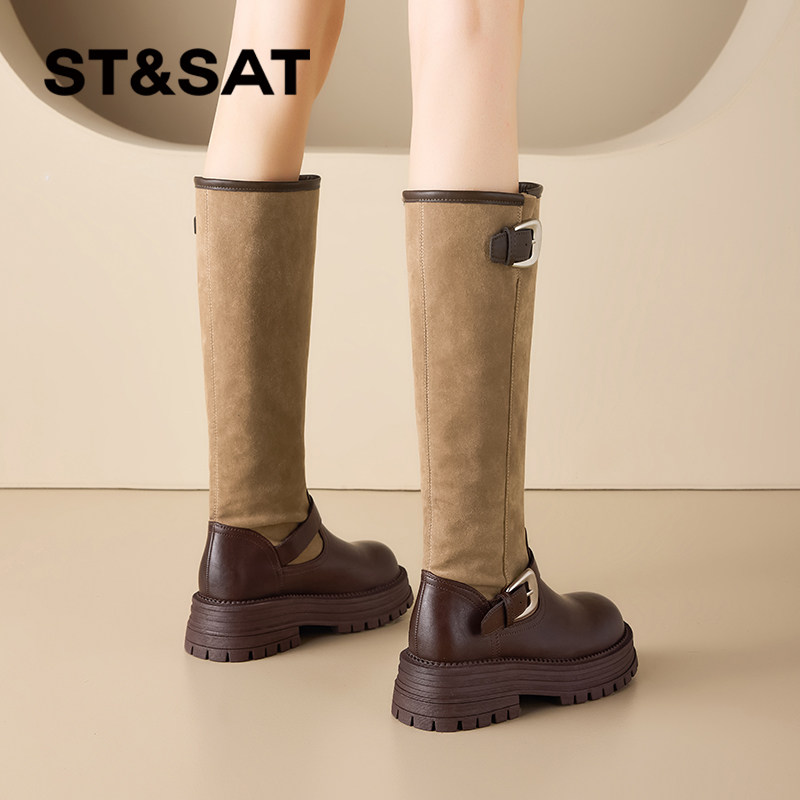 星期六长筒靴子女2025新款秋季美拉德长靴厚底增高显瘦复古骑士靴