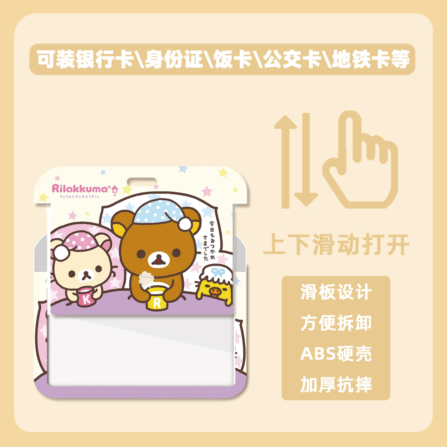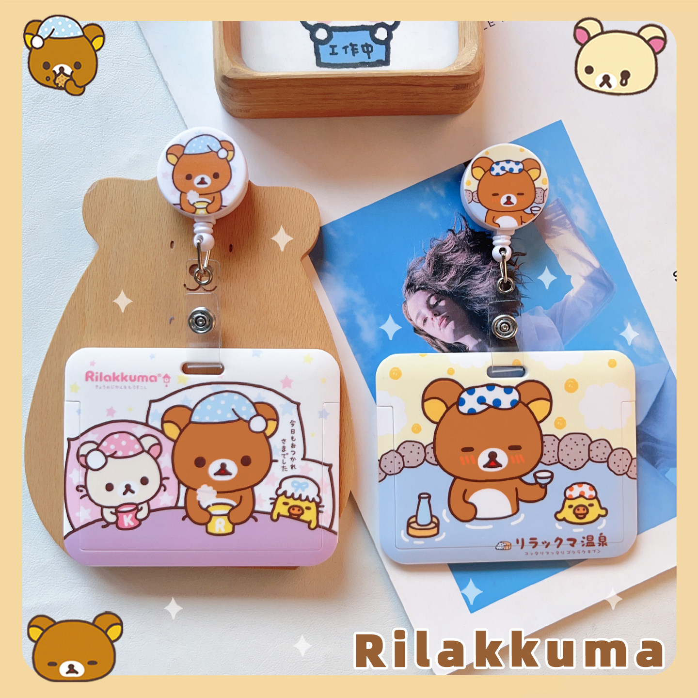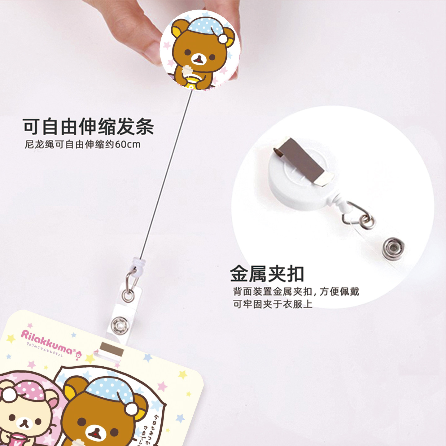 轻松熊熊妹可爱创意横版卡套带伸缩扣挂绳带易拉扣公交学生饭卡银行卡身份证校园证挂脖胸牌