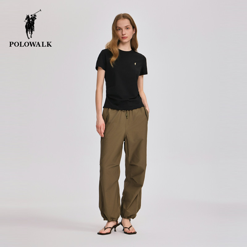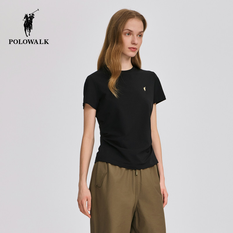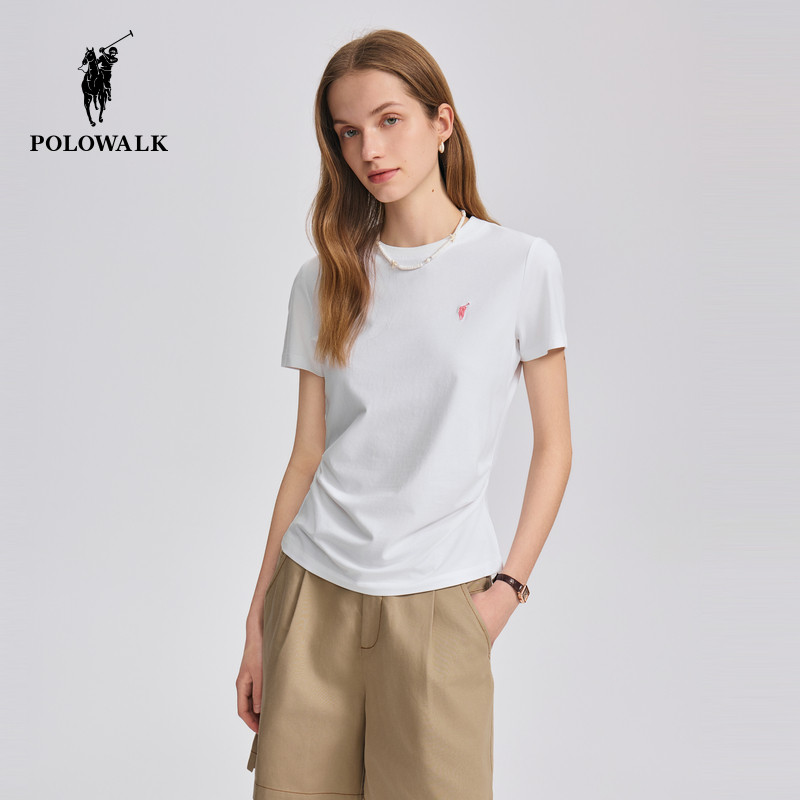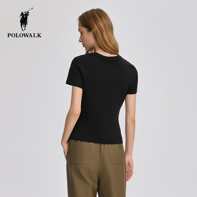 POLOWALK短袖圆T恤女士2026夏季新款休闲百搭打底衫修身圆领上衣