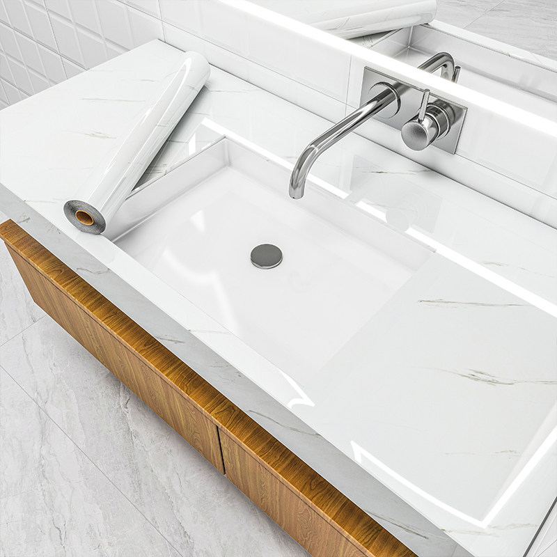 洗手台贴纸防水翻新卫生间洗手池浴室柜门台面改色遮丑大理石贴膜