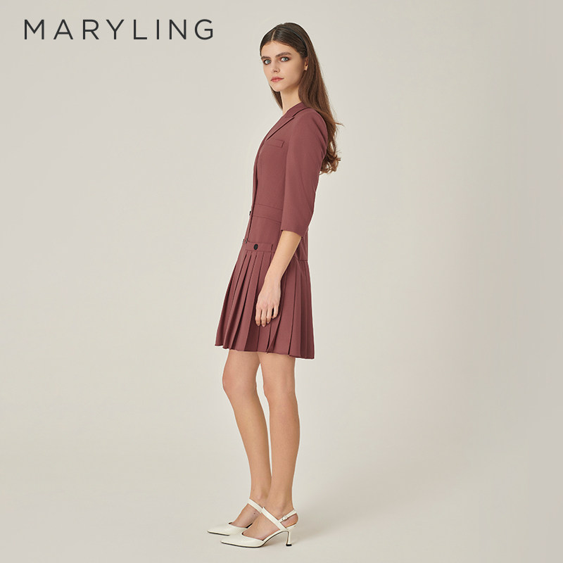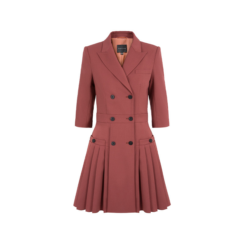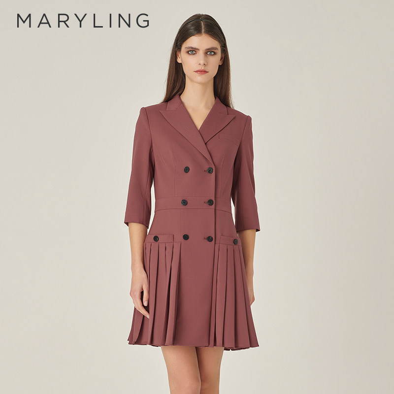 MARYLING玛俪琳秋新品砖红色双排扣翻领西装连衣裙A1EFW61330