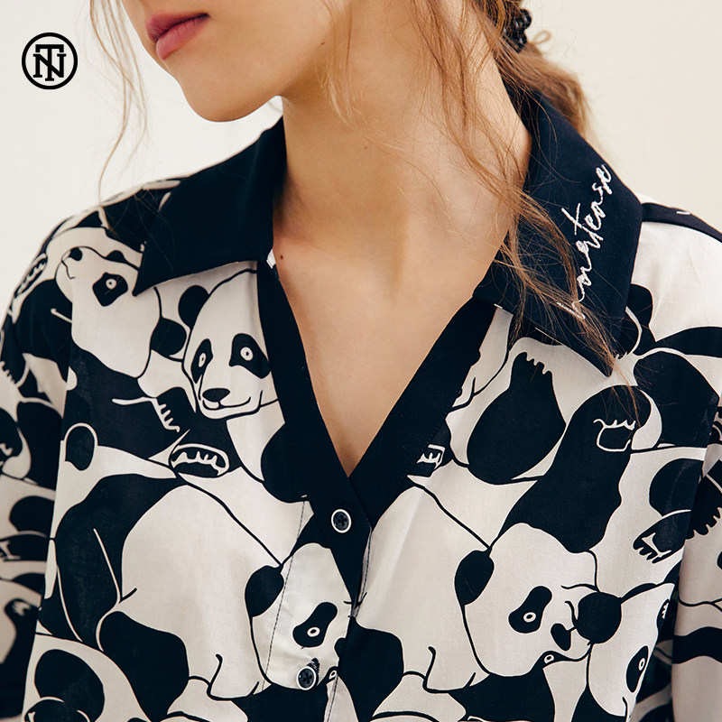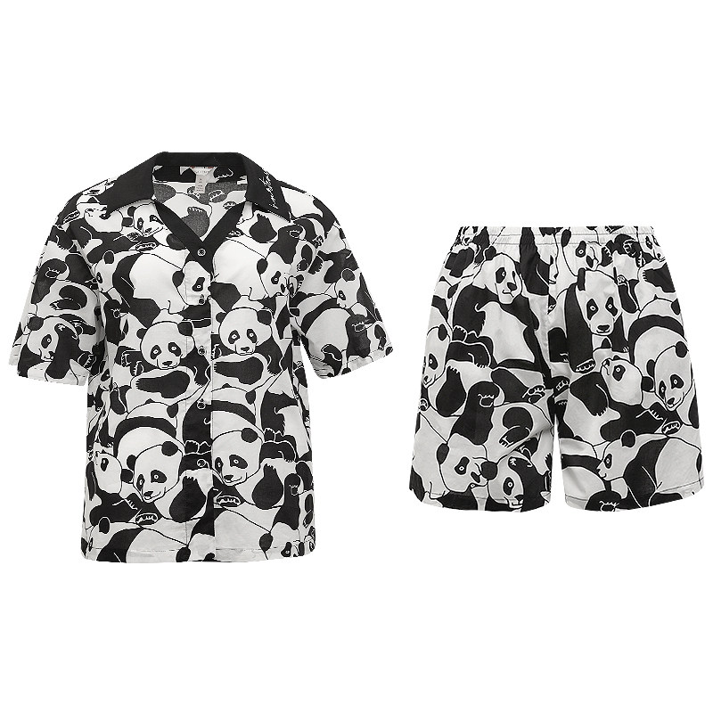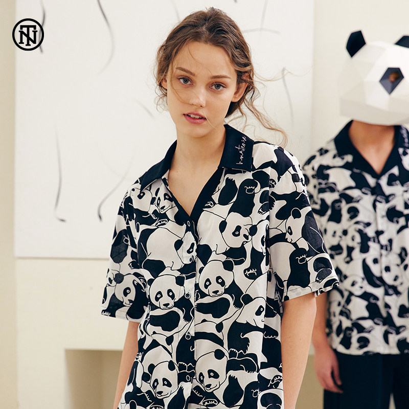 NoirTease奈黎诗夏情侣纯棉薄款刺绣熊猫印花睡衣两件套装家居服