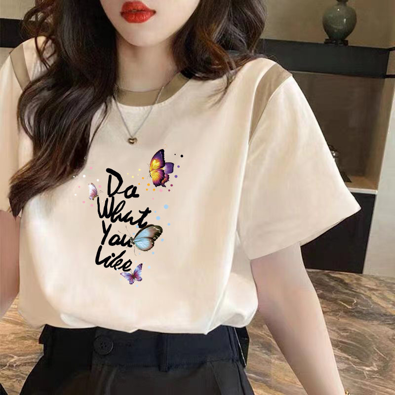 正肩短袖T恤女宽松胖MM遮肚纯棉2025夏季新款大码上衣印花高品衣