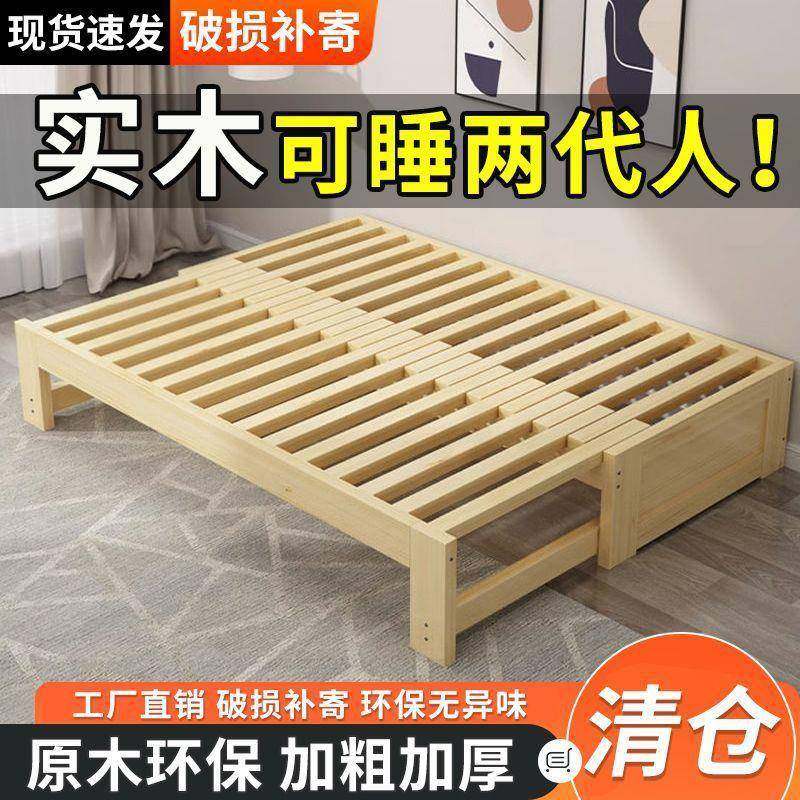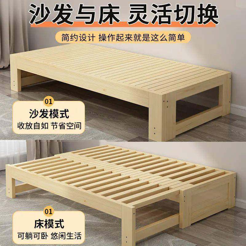 实木沙发床多功能可折叠折叠床拉床小户型可订一体两用伸缩松新款