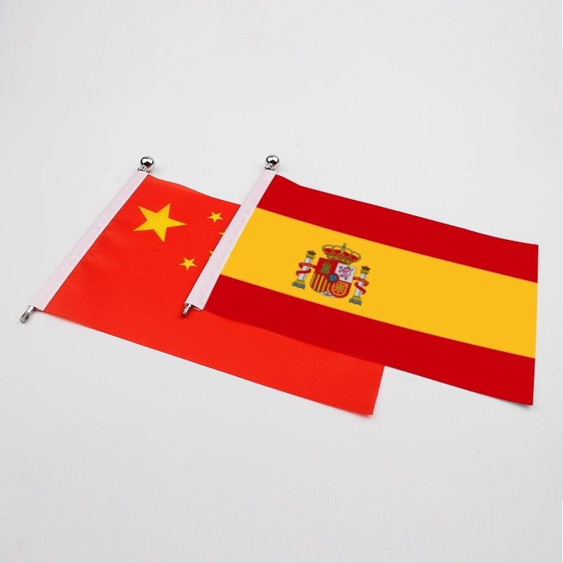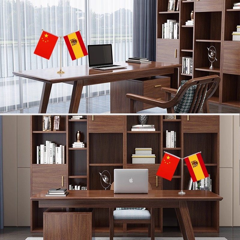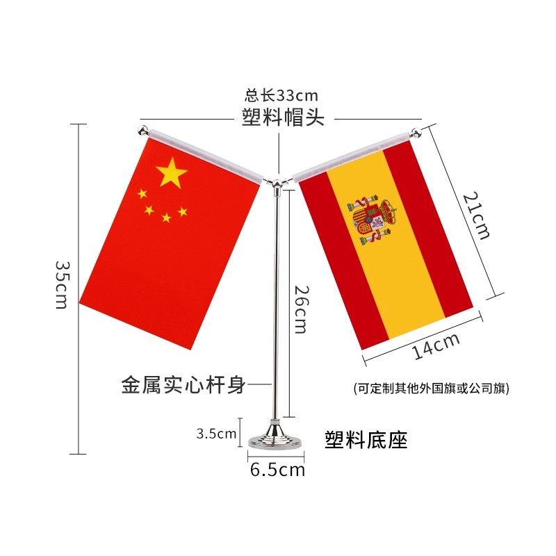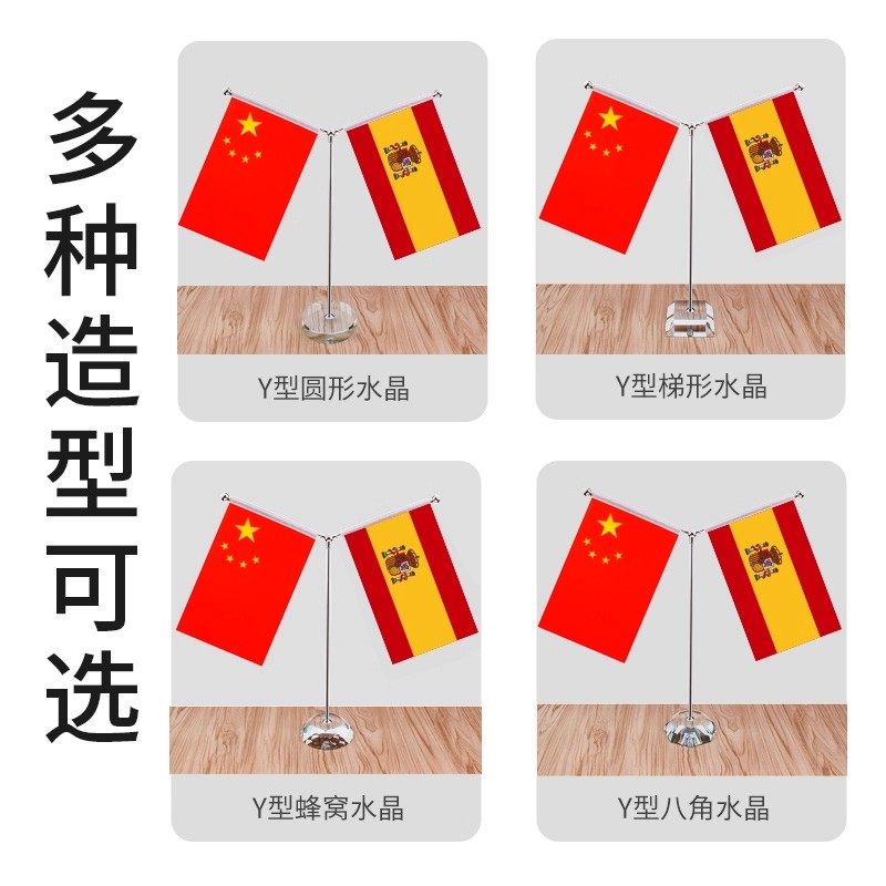 Y型中国西班牙摆件办公室桌旗会议室签合旗国旗不锈钢旗杆旗架台