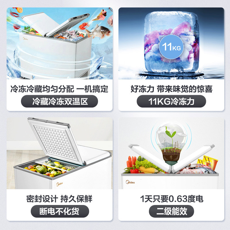 美的271升冰柜双温家商用大容量冷柜冷藏保鲜冷冻两用小冰箱囤货