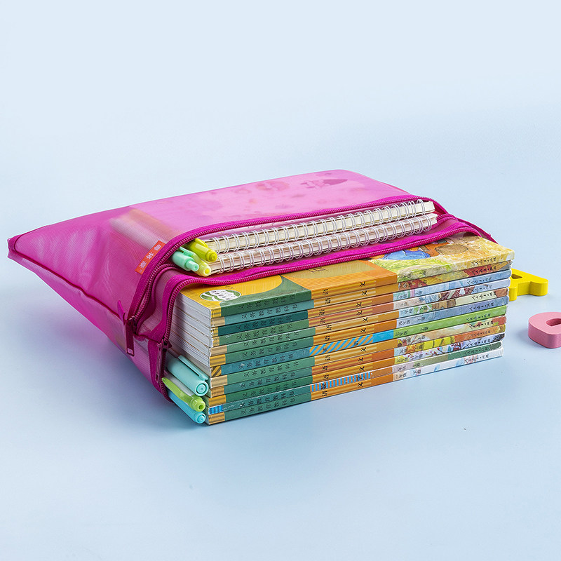 L型学科目分类袋透明网纱文件袋拉链大开口学生手提拎书袋考试用