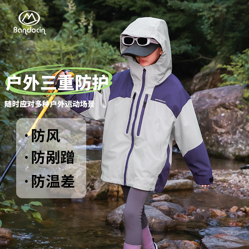 巴布豆童装男外套三合一儿童外套秋冬装2025新款防风防水软壳上衣