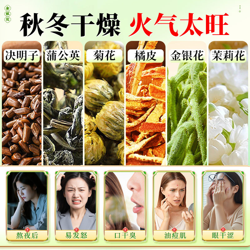 九芝堂金银花菊花茉莉茶上火清解热去肝火三花养肝护降毒排养生茶