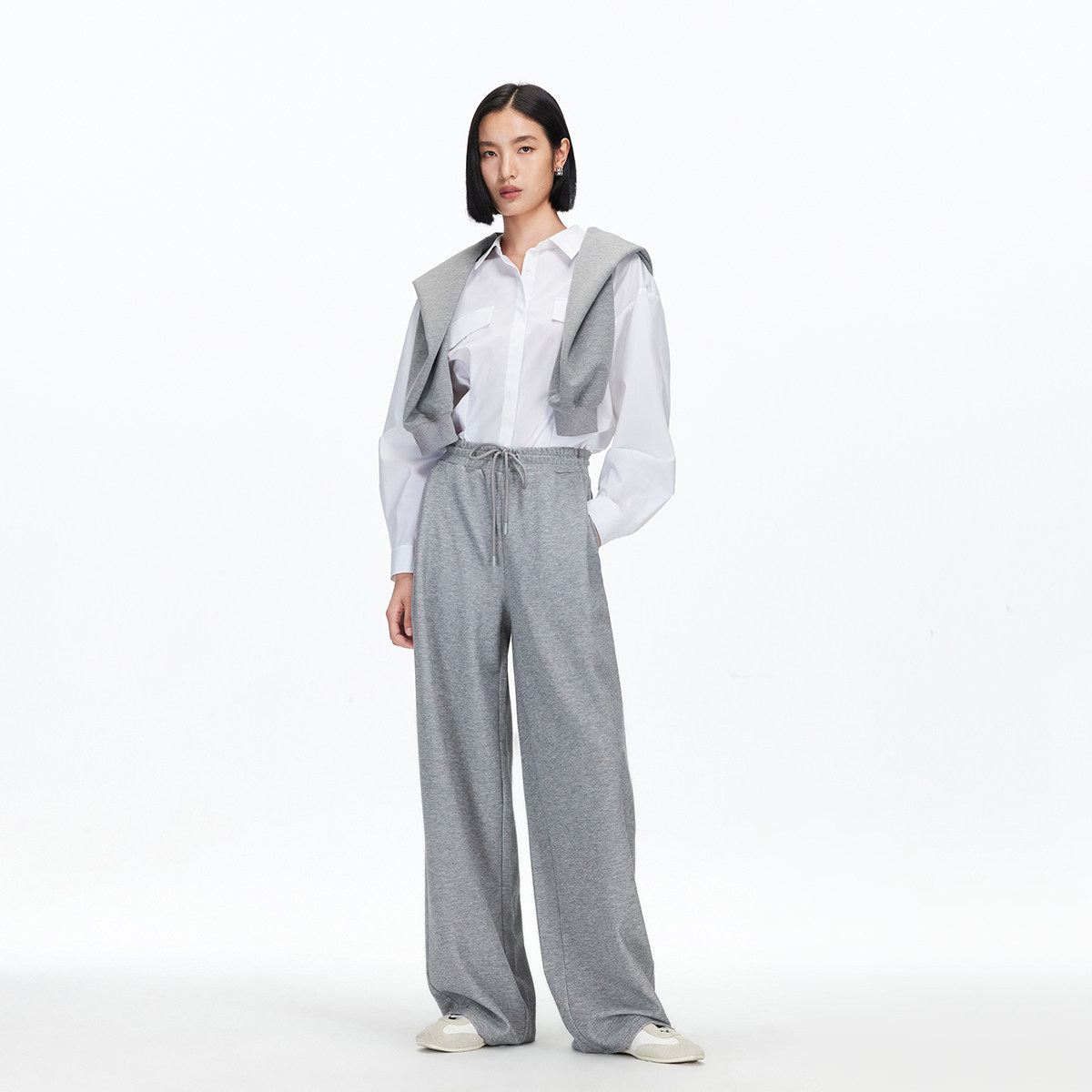 SIINSIIN弯刀卫裤2025新款女冬加绒垂感长裤运动休闲加厚裤子白色