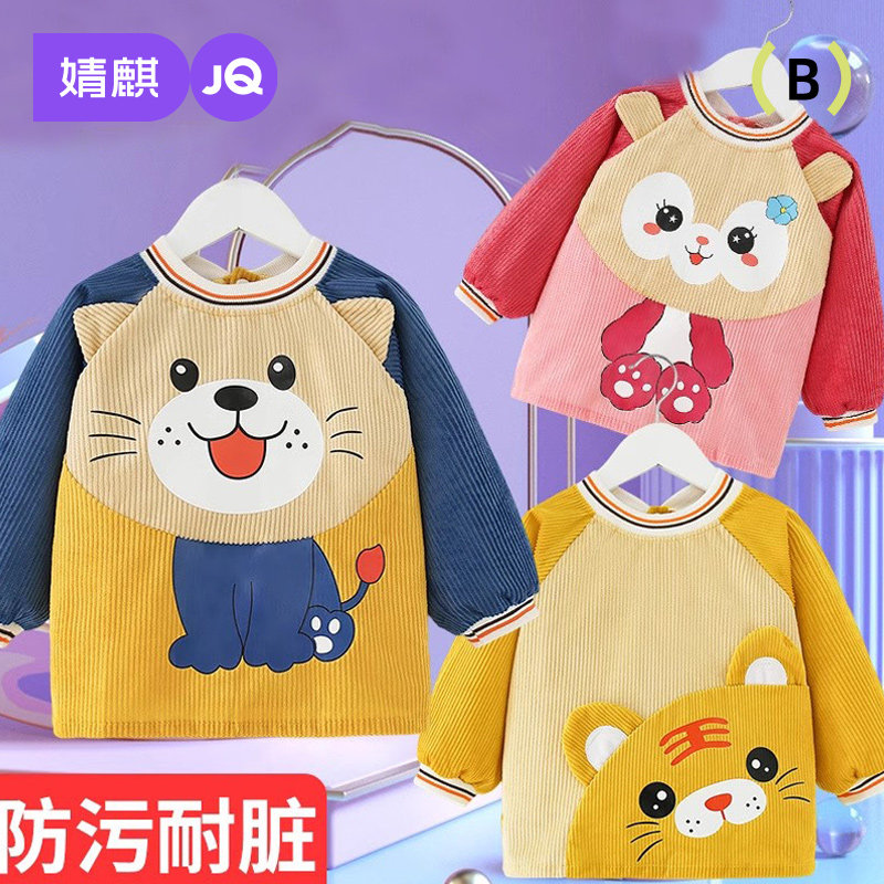 婧麒宝宝吃饭罩衣防水防脏饭兜婴儿长袖罩衫反穿儿童纯棉全包围兜