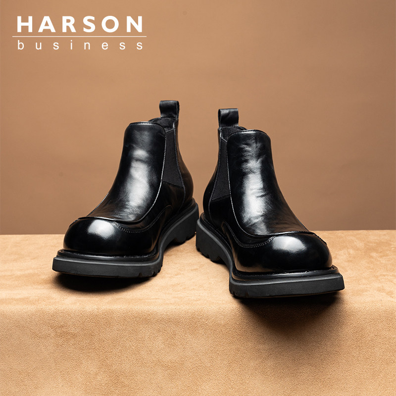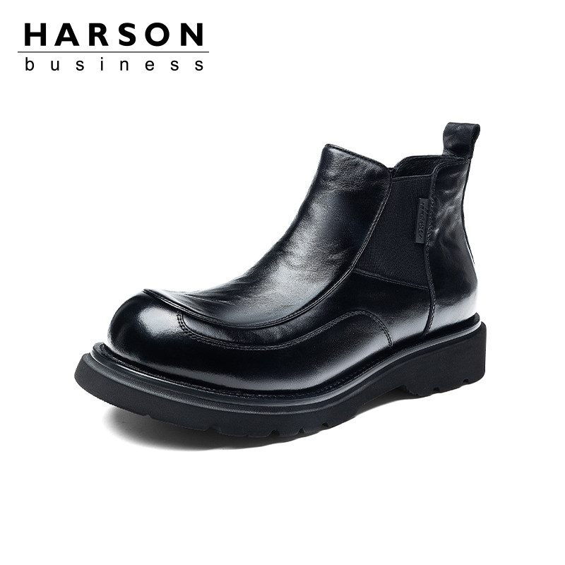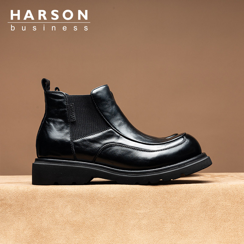 哈森男鞋冬季加绒大头皮鞋男士切尔西靴2025新款厚底时尚马丁靴男