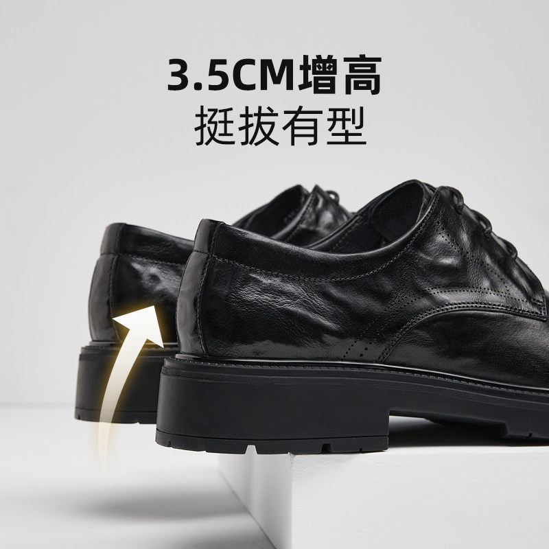 海澜之家男鞋秋冬季正装商务真皮布洛克内增高皮鞋男款加绒德比鞋