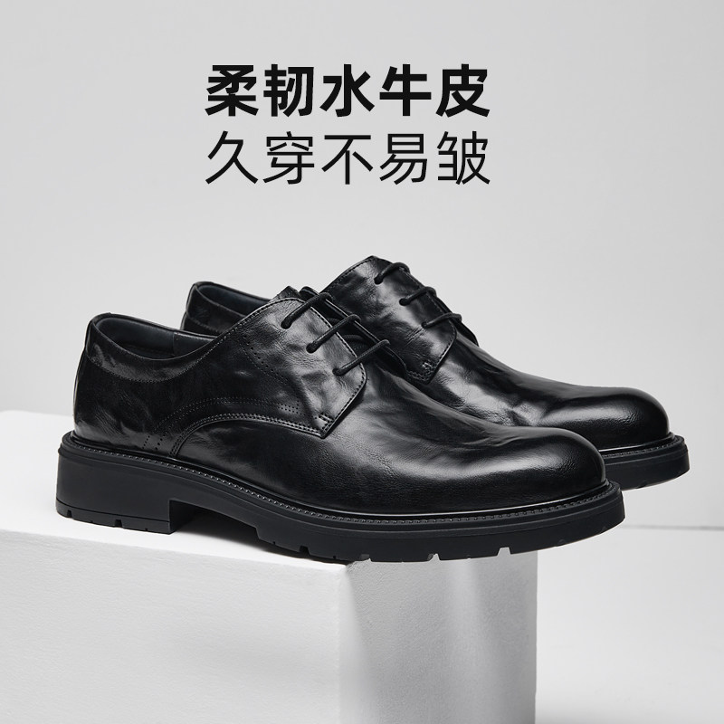 骆驼男鞋2025秋季新款真皮经典复古舒适增高结婚男士正装商务皮鞋