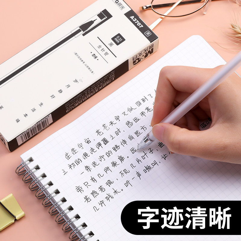包邮晨光k35按动中性笔水笔学生用考试碳素黑色水性签字笔芯0.5mm