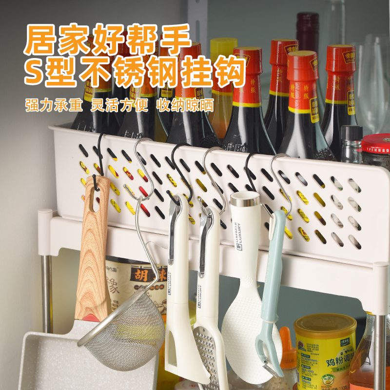 居家厨房铁艺橱柜收纳挂架多功能排钩衣柜整理架厨房无痕免钉挂钩