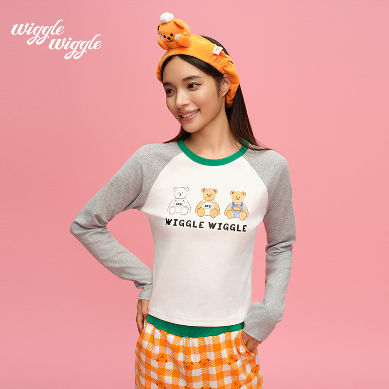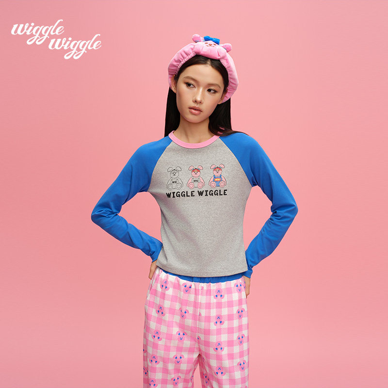 wigglewiggle26年春季韩版印花针织宽松潮流休闲长裤家居服女装