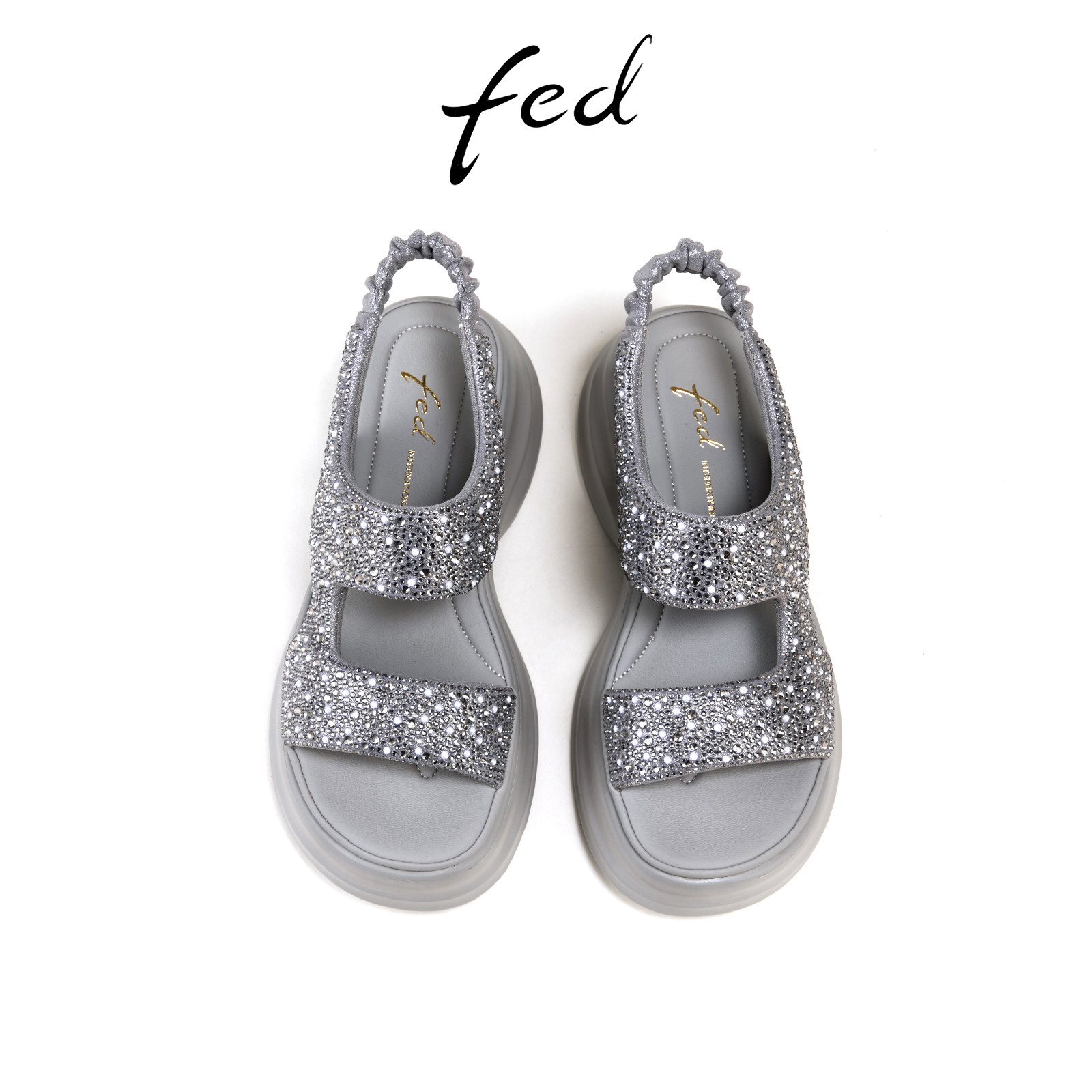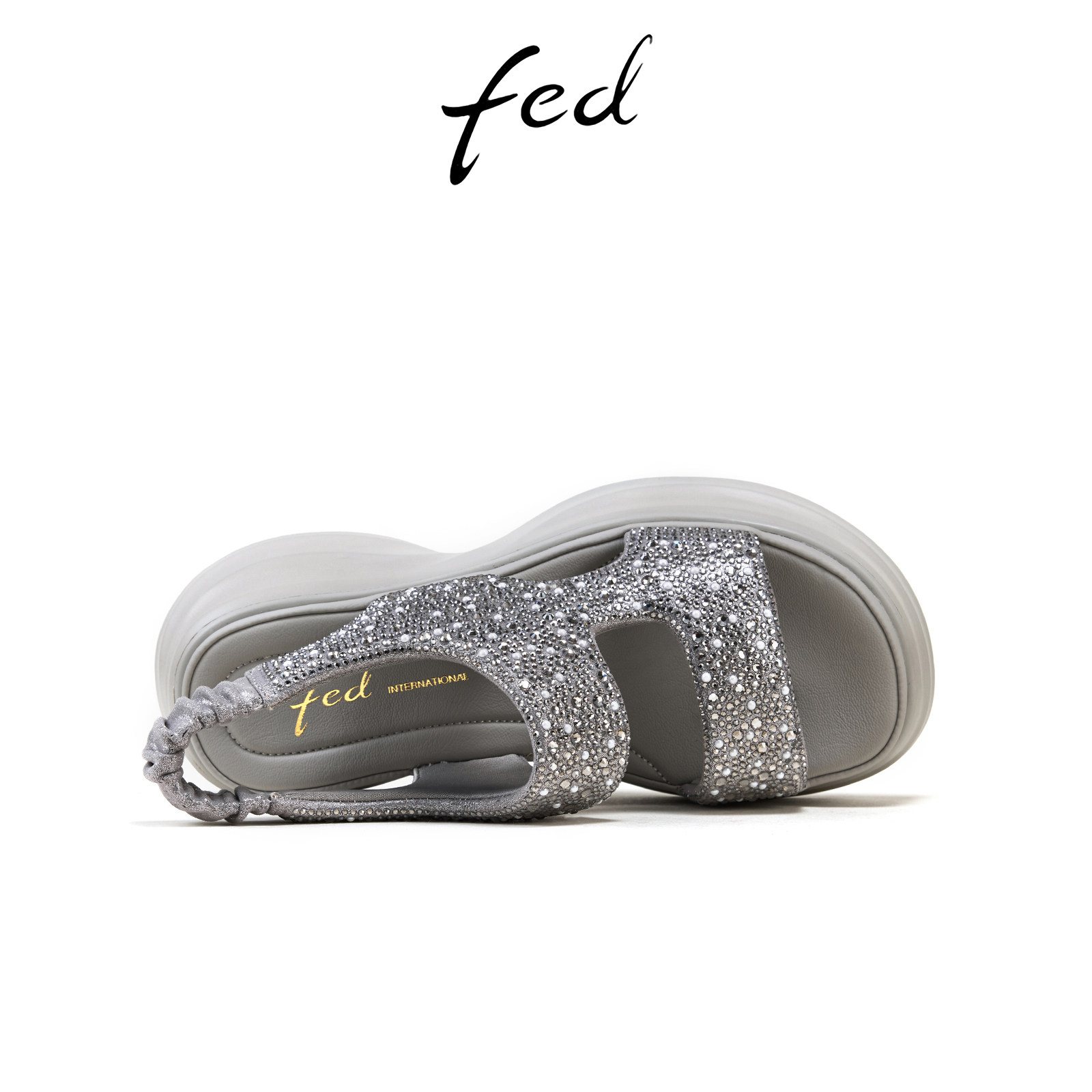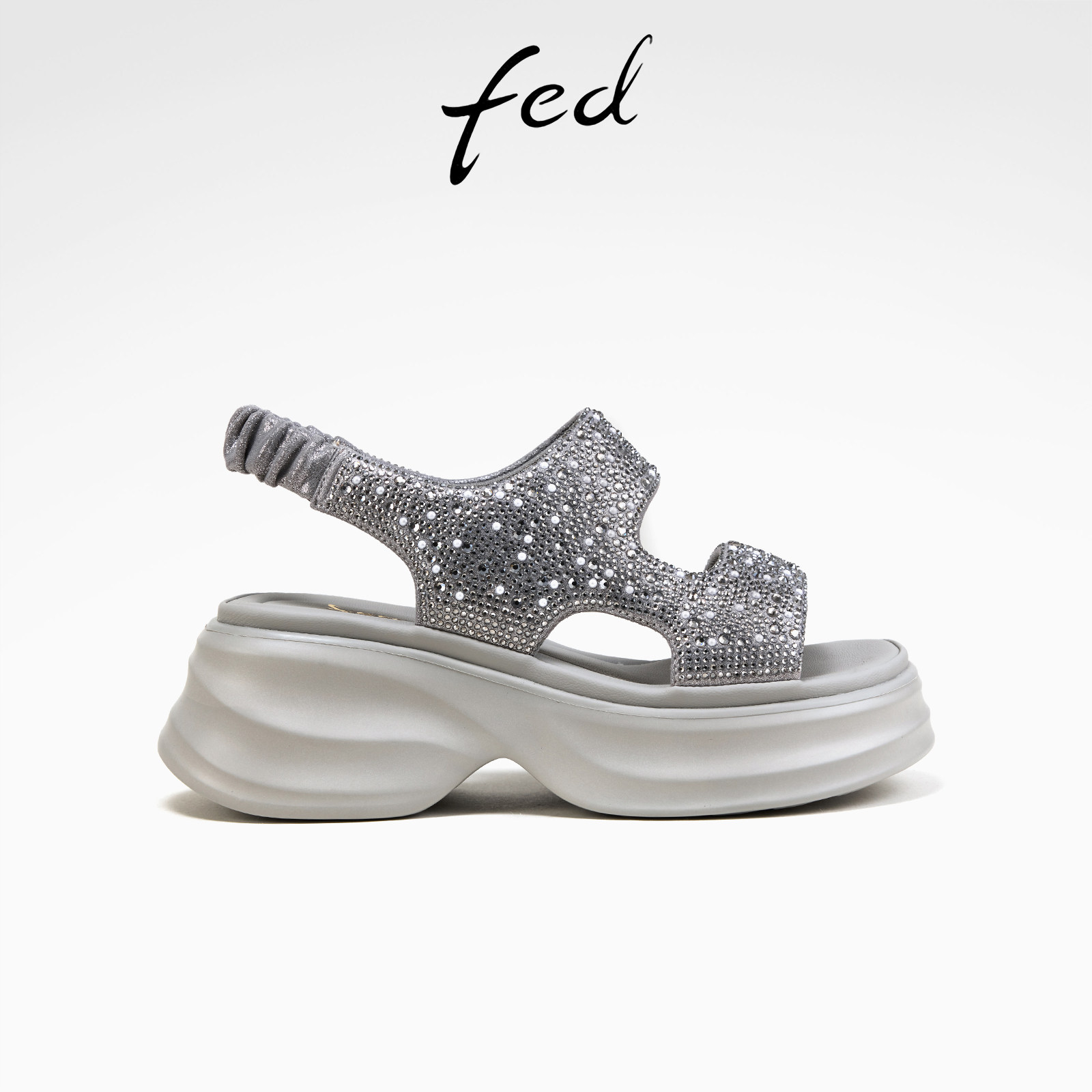 fed银色休闲凉鞋夏季新款女鞋厚底增高水钻凉鞋女款S0421-YAB591