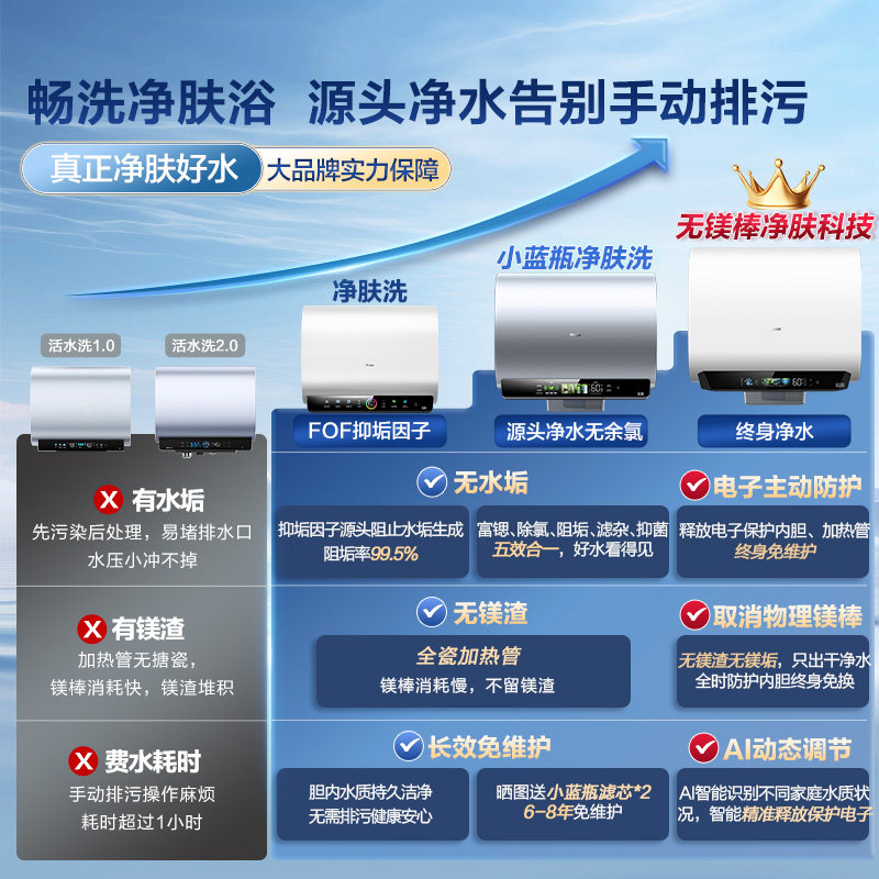 海尔麦浪电热水器换新补贴小蓝瓶无镁棒双胆扁桶变频速热BK5plus