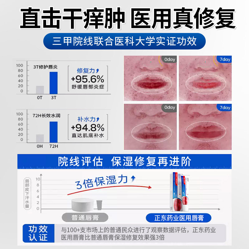 医用型唇炎润唇膏嘴唇干裂脱皮专用保湿滋润去死皮口角炎疱疹修护