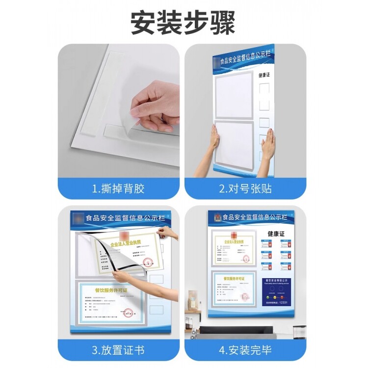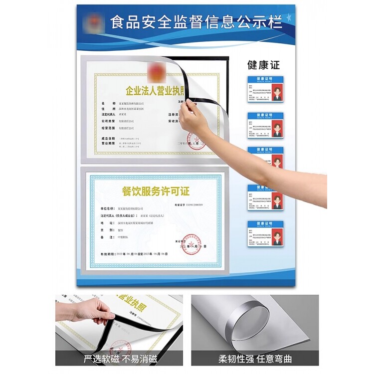 餐饮服务食品安全信息展示板营业框架相框三合一食品卫生经营个人健康许可证公示栏卫生市场监督营业执照卫生