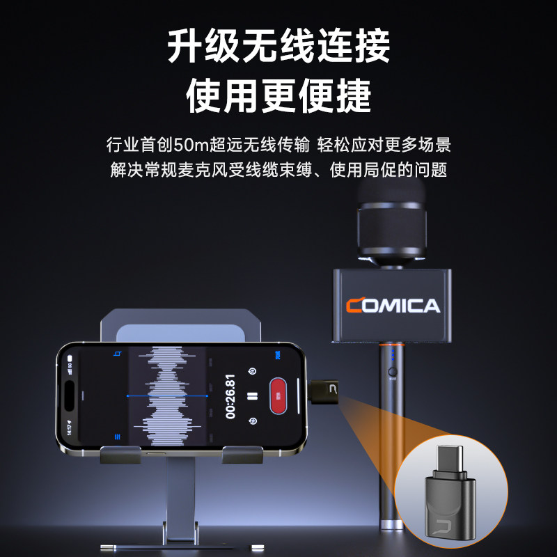科唛COMICA RevoS手机无线采访麦克风街头户外录音直播手持降噪麦