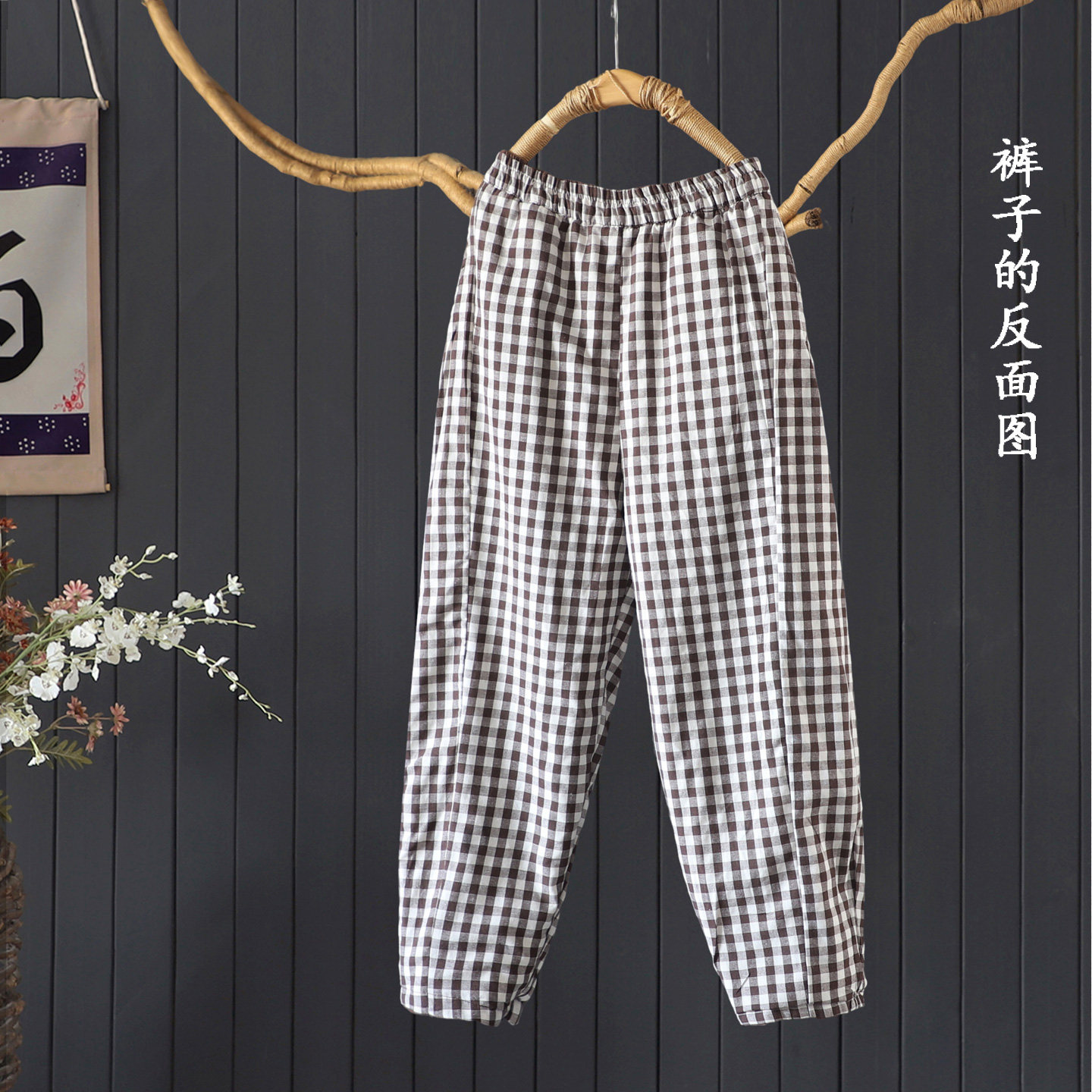 宽松文艺保暖全棉长裤靴裤简约正反两面穿哈伦裤棉裤女反面格子款