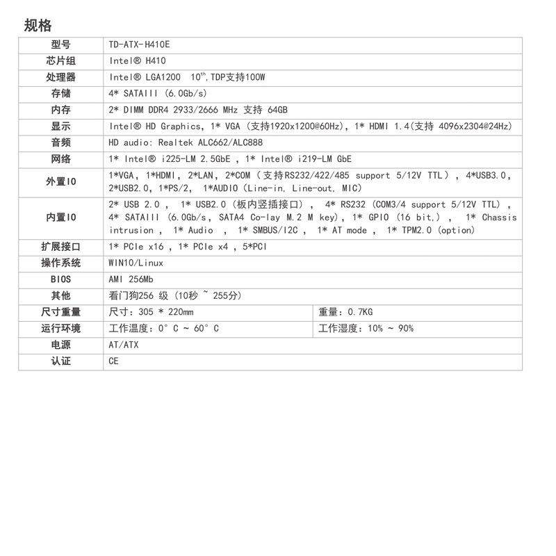 天迪工业大板ATX-H410E酷睿10代主板可替换研华AIMB-707VG双网口