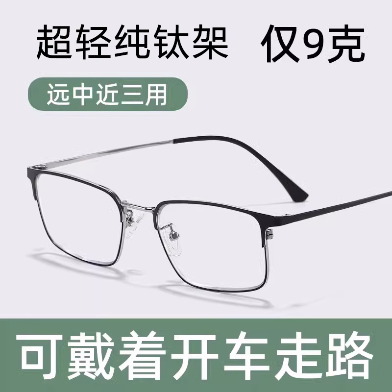 老花眼镜男士中老年人高清防蓝光远近两用智能变焦女远中镜片阅读